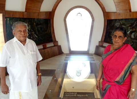 ഭാര്യയോടൊപ്പം കുമാരനാശാൻ സ്മാരകത്തിനു മുന്നിൽ - പല്ലന