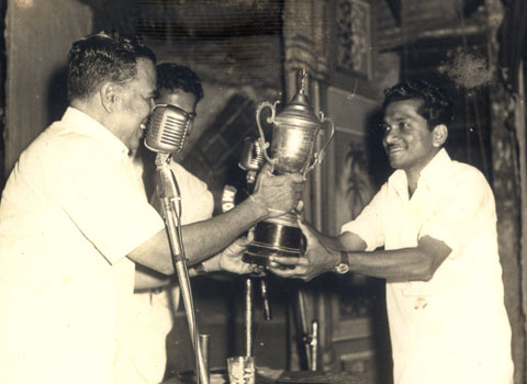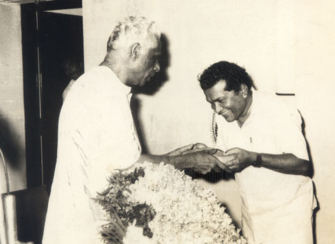എ. കെ. ജി. യിൽ നിന്ന് അവാർഡ് സ്വീകരിക്കുന്നു (1972)