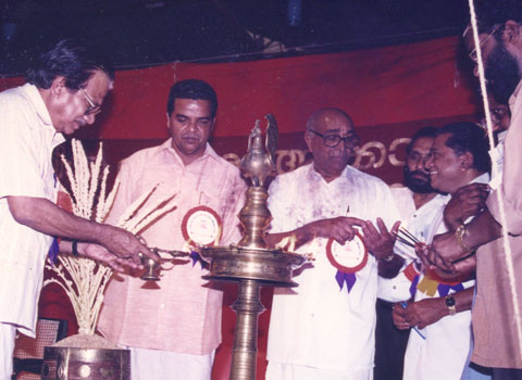 ടി. കെ, പി. ജി, ഒ. എൻ. വി, ദേവരാജൻ മാസ്റ്റർ - ഇന്ദുലേഖ നാടകത്തിന്റെ ഉദ്ഘാടനം 1989